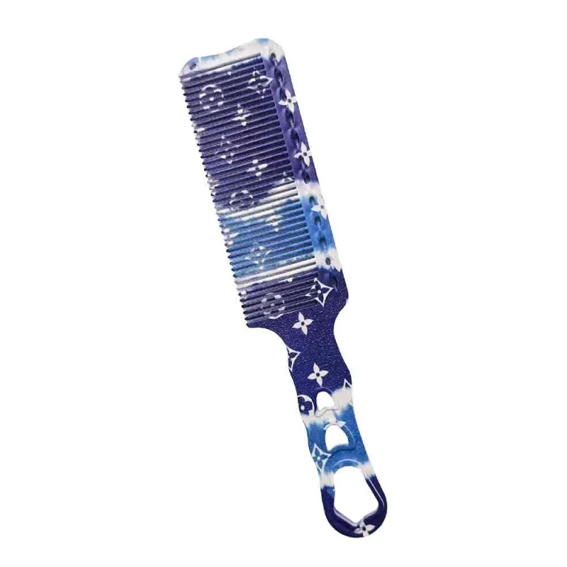 این شانه از پلاستیک فشرده مقاوم ساخته شده و به دلیل خاصیت ضد الکتریسیته، از پرش و وز شدن مو در حین کار جلوگیری میکند. دندانههای منظم و استاندارد، مو را به صورت یکنواخت نگه میدارند تا حرکت ماشین اصلاح نرمتر و نتیجه نهایی حرفهایتر باشد. رنگ آبی طرحدار این مدل، علاوه بر ظاهر خاص، هویت حرفهای ابزار کار را تکمیل میکند.