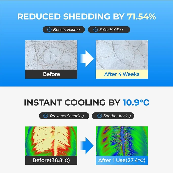 - کاهش ریزش مو تا ۷۰٪ در ۴–۶ هفته