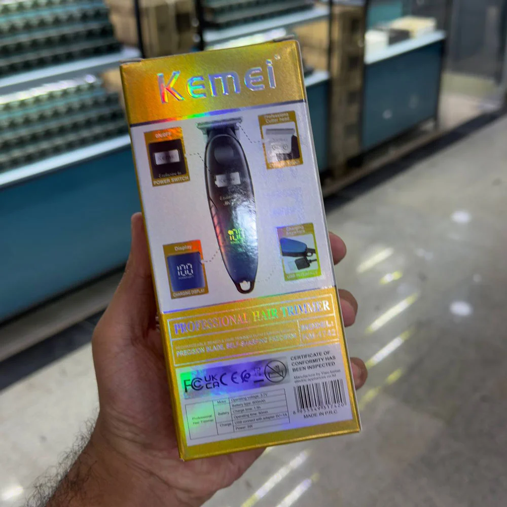 ماشین خط زن کیمی 1742 یکی از مدل های جدید و حرفه ای برند Kemei است که با طراحی زیبا و بدنهی طلایی، جلوه ای لوکس و خاص دارد. این دستگاه برای کسانی ساخته شده که به دنبال ترکیبی از عملکرد قوی، دقت بالا و ظاهر چشمنواز هستند.