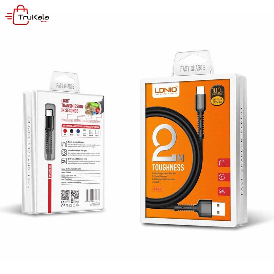 کابل شارژر آیفون الدینیو مدل LS64 محصول شرکت معتبر الدینیو (LDNIO) می باشد. شرکت الدینیو یکی از بهترین شرکت های تولید کننده لوازم جانبی و قطعات گوشی می باشد. این کابل 2 متر طول دارد و رابط آن آیفون (Lightning) می باشد. پوشش این کابل از پارچه کتان بافته شده با کیفیت بالا ساخته شده است که دارای خاصیت مقاوم در برابر سایش بوده و ایمنی و قابلیت اطمینان کابل شارژ را تضمین می کند. این کابل در برابر تاب خوردگی و گره خوردگی هم مقاوم بسیار بالایی دارد. این کابل هم برای شارژ و هم برای انتقال داده مناسب است. در این کابل شارژ و انتقال داده به صورت همزمان انجام میگیرد. هسته ی مرکزی ساخته شده از سیم مسی با روکش آلومینیوم بسیار با کیفیت است که دوام بالایی دارد. انتقال داده در این کابل از USB 2.0 پشتیبانی می کند. این کابل حداکثر 2.4 آمپر جریان ورودی را تحمل می کند.