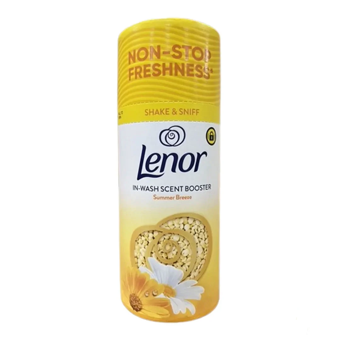 خوشبو کننده لباس نسیم تابستانی لنور شامل دانه های پلیمری حاوی اسانس های تابستانی و گل های معطر سبک است که در مراحل شستشو فعال میشوند.