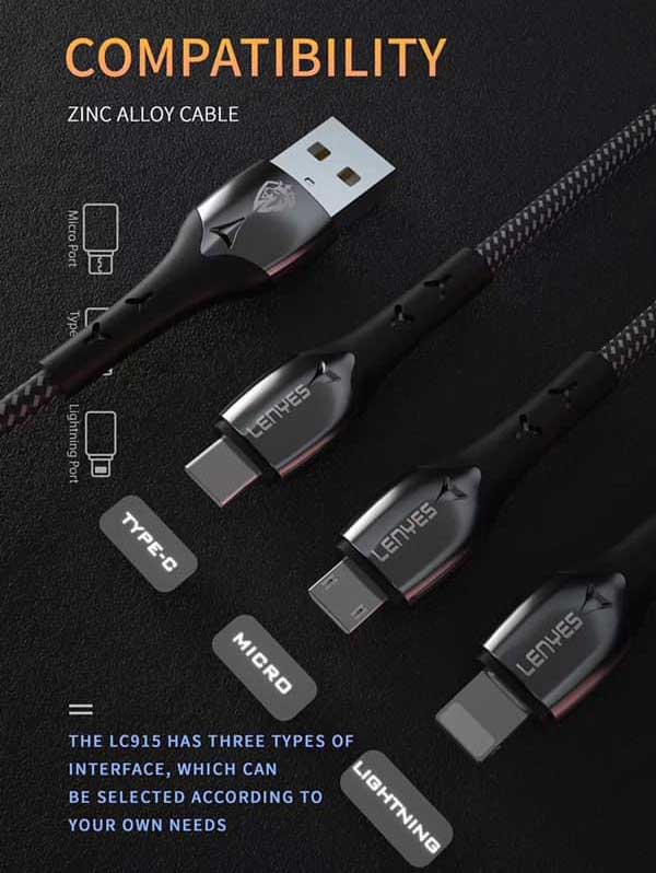 Lenyes Zinc alloy cable LC915TC Charge Cable