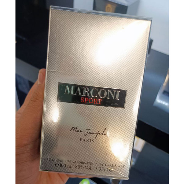 ادکلن مارک جوزف مارکونی اسپرت عطر خاص و پرنشاطی است که سبب انگیزه ی تحرک می شود و سطح آدرنالین را بصورت مثبت بالا می برد. درون بطری مشکی قرار داده شده است که در وسط بصورت کمربند مانندی نوار نقره ای به چشم می خورد.
