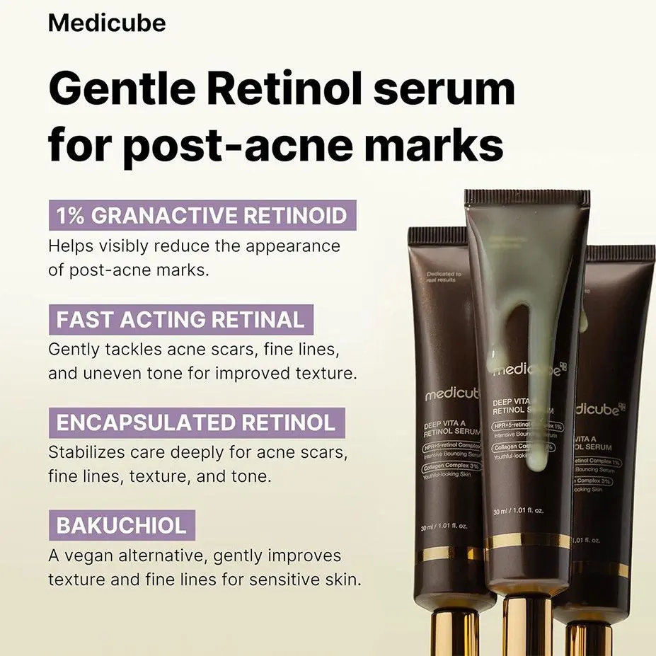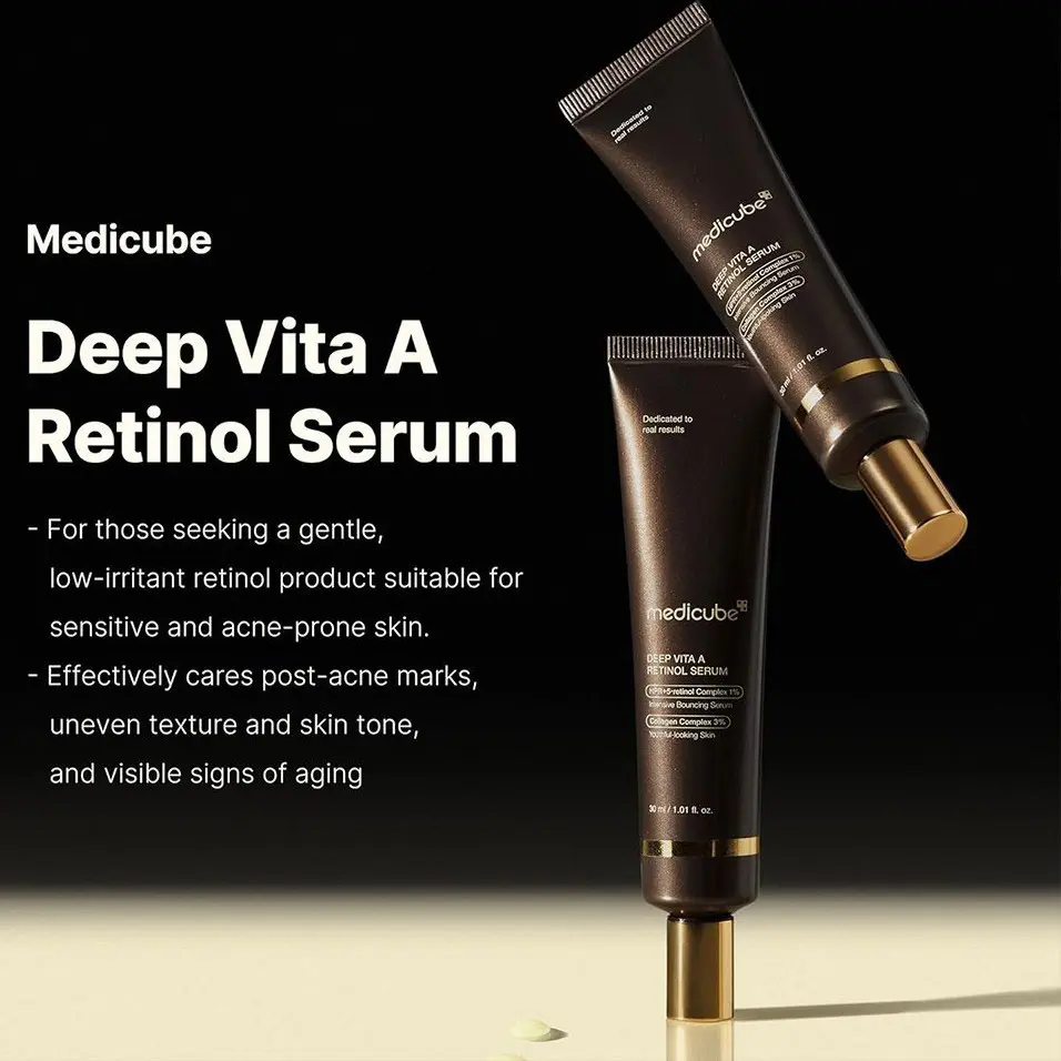 اگر به دنبال رفع چین و چروک، بازسازی پوست و داشتن ظاهری جوان تر هستید، سرم رتینول مدی کیوب مدل Deep Vita A انتخابی ایده آل است. این سرم کره ای با فرمولاسیون ملایم اما مؤثر، ترکیبی از HPR (شکل پایدار رتینول) و کمپلکس رتینول 1٪ به همراه کلاژن 3٪ را ارائه می دهد.