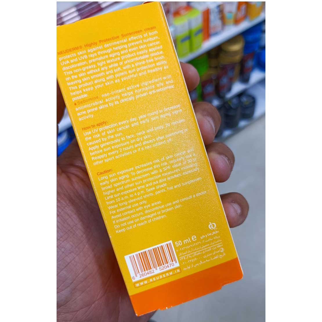 کرم ضد آفتاب SPF50 بدون چربی بی رنگ نئودرم