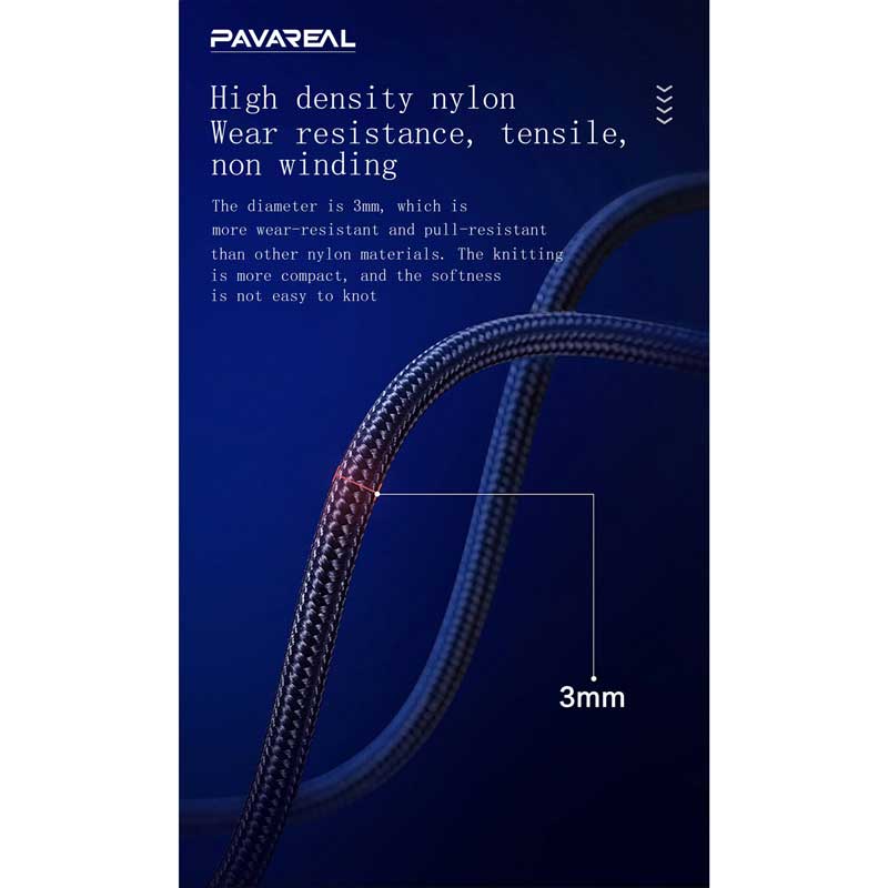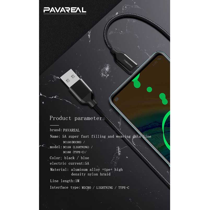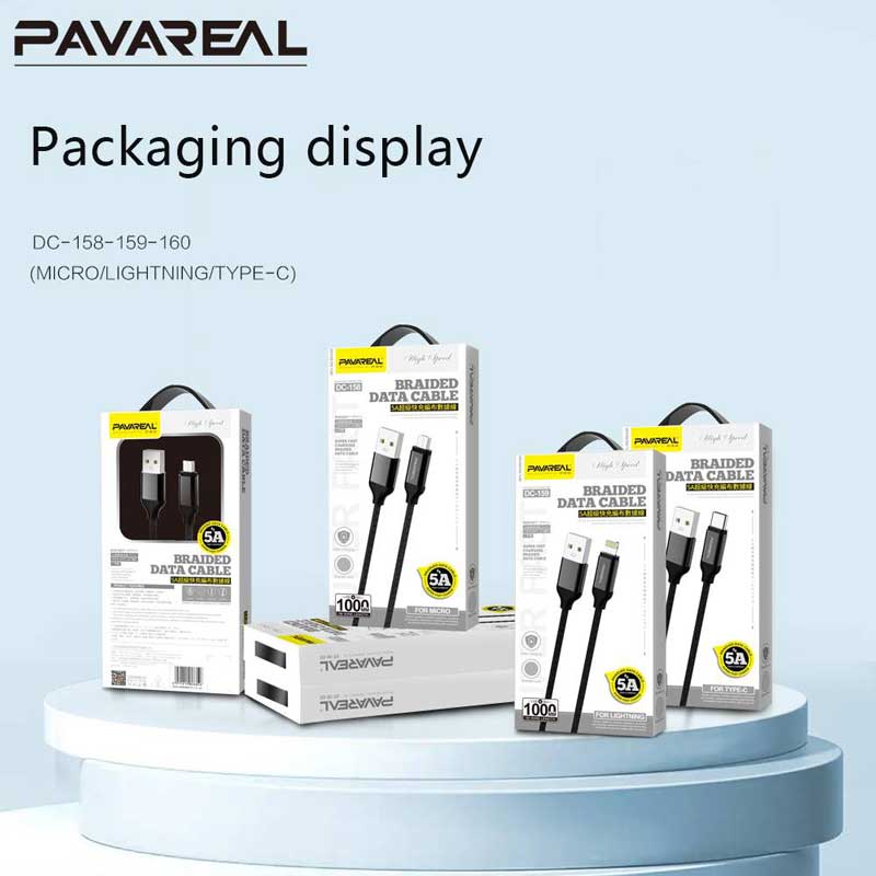 کابل شارژر پاواریل تایپ سی مدل DC-160 ساخته شده و طراحی شده توسط برند پاواریل (PAVAREAL) می باشد. این برند تولید کننده محصولات جانبی گوشی می باشد. سیم های داخل این کابل از جنس مس بوده و در انتقال داده سریع ترین انتقال اطلاعات را به شما می دهد. این کابل می تواند همزمان هم به صورت فست دستگاه شما را شارژ کند و هم انتقال اطلاعات برای شما انجام دهد.