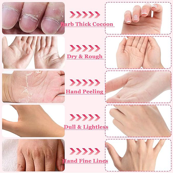 این محصول غنی از ذرات فعال جذب پوست را تقویت کند و مواد مغذی را حفظ میکند. راه حلی اسان برای ترمیم عمیق و حل ریشه مشکلات دست، مانند: خشکی، خطوط ریز، تیرگی و غیره. این ماسک لایه بردار دست با مایع فعال و ویتامین ها پر شده در یک جفت دستکش پوشیدنی فرموله شده است. این به شما دستی نرم تر و جوان تر می دهد.