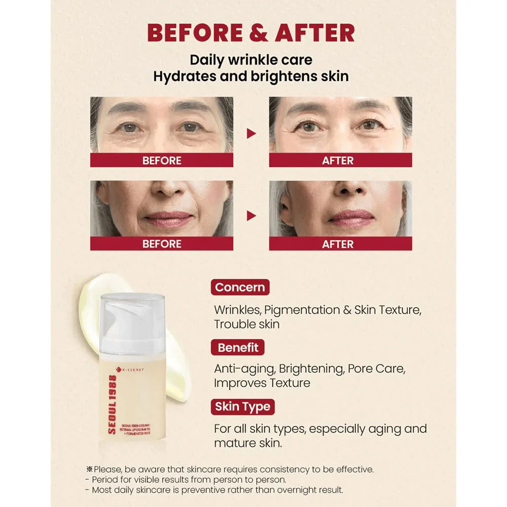 کرم ضد پیری رتینال لیپوزوم ۱٪ و برنج تخمیری سئول 1988 کی سکرت 50 میل