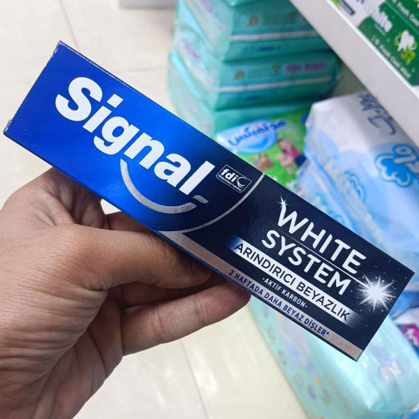 خمیر دندان سیگنال Signal White System به عنوان یک خمیر دندان طبیعی و غیر شیمیایی معرفی میشود و به سفید کردن دندانها کمک میکند. بوی بد دهان را نیز کاهش می دهد. ذرات زغال فعال با جذب ترکیبات بو زا در دهان، عطر و بوی تازهای به دهان شما میدهد.