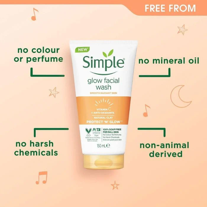 ژل شستشو ویتامین سی سیمپل مدل Glow حجم 150 میل