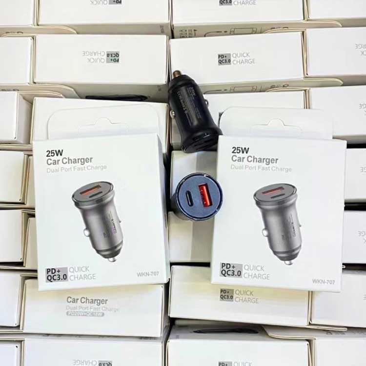 شارژر فندکی 25 وات مدل WKN-707 مناسب تمامی گوشی ها و برند ها برای تبلت می باشد. توان مصرفی این شارژر 25 وات می باشد. شما می توانید به راحتی دو دستگا همزمان را با این شارژر بدون نگرانی از آسیب به باتری شارژ کنید.